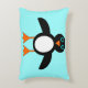 Este travesseiro incrível apresenta um personagem pinguim fofo com uma barriga branca, grandes olhos azuis com pupilas pretas e pés cor de laranja e bico. Esta pequena ave de inverno encantadora encanta crianças e adultos. O pinguim se senta sobre um fundo azul pálido e gelado para lembrá-lo de sua casa chilena no Ártico.