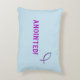 travesseiro de sotaque azul claro com "Anointed!" e imagem ilustrada do peixe. A cor roxa simboliza a realeza, portanto unida. O peixe ou o ichthys é o símbolo secreto usado pelos cristãos primitivos para se identificarem e se reunirem sem perseguição.