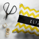 Padrão elegante, na moda e sofisticado zigue-zague (chevron) em cor amarela e branca. Presente moderno e moderno, perfeito para o amante ziguezague na sua vida. Personalize adicionando o seu nome, apelido, monograma ou iniciais.