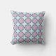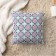 A decorative pillow featuring a symmetrical geometric pattern with blue, white, and brown hues shown from the front and back on a gray background.