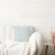 A decorative pillow featuring a symmetrical geometric pattern with blue, white, and brown hues shown from the front and back on a gray background.
