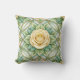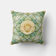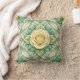 Decorative pillow with a yellow rose at the center, surrounded by intricate green leaf patterns. Both the front and back views feature the same elegant design.