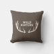 Um travesseiro marrom com uma ilustração de veados e um texto totalmente personalizável: "Natureza Selvagem" no estilo rústico! Adicione um toque da natureza da vida selvagem à decoração da sua casa!