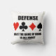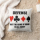 Mostre sua atitude de ponte/ponte duplicada com este travesseiro decorativo com os quatro naipes de placa junto com o seguinte truísmo de ponte dizendo: "Defense What The Game Of Bridge Is All About".