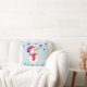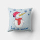 Deixe nevar Almofada de Lançamento de Crianças com Floco de Neve de Boneco de Neve Fofo. Boneco de neve sorridente com um floco de neve no nariz. O boneco de neve está olhando para os flocos de neve e esperando pela neve. A almofada vem com uma citação de inverno Deixe nevar. O boneco de neve tem um chapéu vermelho e um cachecol.