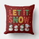 Quatro pequenos homens de neve com tipografia de Deixar nevar e flocos de neve.