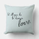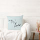Travesseiro azul claro simples com aspas de fontes manuscritas na frente e no verso. A citação diz: "Deixem-Se Fazer Tudo No Amor". A letra está em preto. Procure este design em outros produtos do Simple Living.