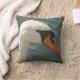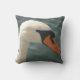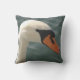 Der grosse Kopf eines weissen Schwans mit Wassertrofpen vor leicht gewelltem dunkelgrauen Wasser ist das Design dieses americanas MoJo Dekokissens.