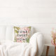 Este travesseiro apresenta flores cor-de-água cor-de-rosa-claro e folhas verdes-de-moda, com as palavras "lar doce lar" no texto preto moderno. Nós usamos arte do Crio do Corte.