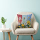 Dente-de-leão brilhante amarelo e branco em um design de almofada de lançamento listrado vermelho e azul.