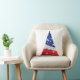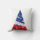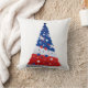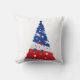 Um travesseiro decorativo legal, do Natal, com uma árvore de Natal vermelha, branca e azul, patriótica, em ambos os lados do travesseiro.