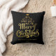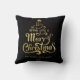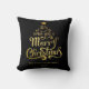 Desejamos-lhe um Feliz Natal personalizado, Dourado e Travesseiro decorativo Negro. Um Travesseiro gráfico de Natal festivo com uma mensagem clássica em forma de árvore de Natal divertida em um fundo vermelho.