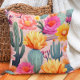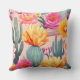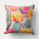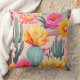 Este travesseiro vibrante mostra um jardim de cacto florescente contra um fundo cor-de-rosa suave. Apresentando suculentos detalhados com grandes flores amarelas, laranja e cor-de-rosa, o design rebenta com cor e calor. Perfeito para um estilo de decoração inspirado no sudoeste, no boho ou no verão, ele adiciona um sotaque animado e alegre a sofás, pátios ou quartos.