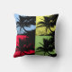 Design de palmeira colorida tropical num efeito posterizado repetido. Padrão natural de silhuetas de árvores. Palmeiras tropicais.
