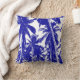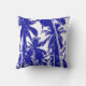 Design de palmeira tropical num efeito pós-erizado. Azul e branco. Padrão natural das árvores em cores azul e branca. Palmeiras tropicais.