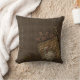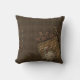 Travesseiro do design de Steampunk com o fundo tecido marrom do olhar embellished digital com chaves de esqueleto em uma corda, na fita com os ilhós amarrados em um arco, nas engrenagens, no bolso do olhar do tecido com as engrenagens dobradas em parte para dentro, no botão e na palavra "Steampunk" através da parte superior. A parte traseira do travesseiro não tem nenhum enfeite diferentes do fundo.