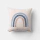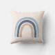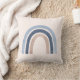 Travesseiro com um arco-íris giro e caprichoso. Aquarelas azuis e de pêssego.