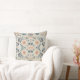 Este é um travesseiro decorativo com designs de cor clara. Tem muitas flores e folhagem.