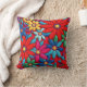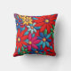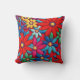Padrão floral de margarida abstrato bordado em cores vermelha, amarela, azul e verde.
