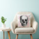 Crânio humano realista design gótico com fundo vermelho-pálido e branco abstrato. Design gráfico original, misturando duas peças originais, flores vermelhas pálidas e desenho digital em escala de cinza de um crânio humano. Perfeito para o Halloween, ou aqueles que apreciam arte gótica e designs.