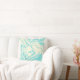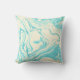 Um na moda e travesseiro sofisticado com um padrão elegante de mármore faux com cores giratórias em azul turquesa e cores creme.