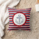 Design náutico com decoração da âncora desenhada à mão sobre fundo riscado a azul, vermelho e branco
