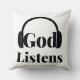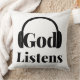 Este travesseiro decorativo apresenta as palavras "Deus escuta" em um impressão ousado com letras negras mostrando um conjunto de fones de ouvido sobre a frase que Deus escuta neste estilo e tema baseado na fé. Este travesseiro é feito com tecido simples de alta qualidade nossos travesseiros são macios e sem rugas, o cobrir é lavável por máquina.
