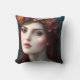 Belo travesseiro decorativo apresenta uma impressionante imagem gerada por IA da Deusa do Amor, Afrodite ou Vênus em um estilo de retrato de arte fino com cores ricas e uma coroa floral exuberante.
