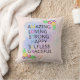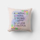 Travesseiro floral brilhante com flores, corações e texto "Incrível, Adorável, Forte, Feliz, Inútil, Graciosa, Mãe". É tudo sobre a MÃE!