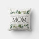 O travesseiro decorativo dia de as mães apresenta um quadro verde de folhas com "minhas maiores bênçãos me chamam MOM" com nomes infantis. Faz um presente perfeito.