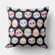 Um padrão festivo de crânios mexicanos de açúcar em travesseiros decorativos para celebrar o Dia dos Mortos. Eles têm muitos detalhes brilhantemente coloridos e realmente se destacam em uma cor preta de fundo. Eles vêm em vários tamanhos e você pode ajustar o tamanho do padrão para torná-lo seu próprio decor único!