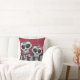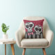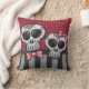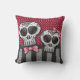 Travesseiro bonito com design reversível. Um lado apresenta um belo padrão de bolinhas rosa e vermelha com cinzas e faixas de pirata pretas, amarradas com uma fita esparsa preta e uma noiva e noiva de los Muertos. O dorso tem um padrão de distribuição vertical em negrito. Cheio de diversão brilhante. Bonita. Garota. Versátil.