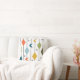 Este travesseiro decorativo tem um design moderno século médio de linhas verticais com diamantes e bumerangs, com rajadas de estrelas espalhadas ao fundo.
