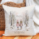 Travesseiro decorador com uma pintura de duas meninas caminhando pela floresta, de mãos dadas. O texto diz, "Somos como um floco de neve, diferentes da nossa própria maneira bela."