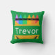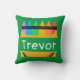 Um travesseiro personalizado e colorido para crianças é excelente para quartos, salas de jogos e áreas de escolaridade em casa. Design apresenta uma caixa de giz dividido com espaço para personalizar com o nome da criança no centro, em fundo verde.