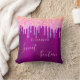 Um travesseiro para um quarto de meninas de 16 anos. Um fundo metálico roxo profundo com aspecto fino com gotas elegantes de brilho sujo, pingando tinta com cores do arco-íris. Roxo, rosa e ouro rosa. O texto: Doce Dezesseis é escrito em ouro-rosa leve com um grande estilo escrito à mão moderno. Personalize e adicione um nome.