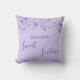 Uma travesseiro para um quarto de meninas de 16, 16 anos. Um fundo violeta, de cor lilás com estrelas. Personalize e adicione um nome. Sweet 16 é escrito com um grande estilo escrito à mão.