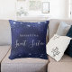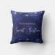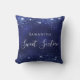 Uma travesseiro para um quarto de meninas de 16, 16 anos. Um fundo azul marinho com poeira brilhante fraca. A cor azul é irregular. O texto: Doce Dezesseis é escrito em branco com um grande estilo escrito à mão moderno. Personalize e adicione um nome.