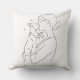 Transform your living space with this beautiful minimalist throw pillow featuring a continuous line drawing of a woman and her beloved dog. The elegant black and white design complements any modern home decor style.