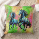 Uma representação vibrante dos cavalos galopantes. Mostra uma mistura dinâmica de blues e ouro, destacando seu homem fluente. Verde colorido, amarelo, fundo cor-de-névoa rosa,