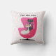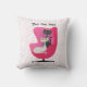 Este travesseiro decorativo tem dois gatos sofisticados, um preto e um branco no estilo de meio século sentado em uma cadeira rosa brilhante vestindo colares de diamante em um fundo branco com pontos cor-de-rosa. Personalize seu texto com o modelo na frente e atrás.