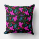 Almofada Doodle pattern flowers, leaves birds black backgro