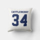 Add a name and number(s) to personalize this custom double-sided blue and white sports jersey inspired accent pillow. It is an excellent gift for a sports fan or athlete. The options to change the color and font sizes are available.