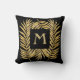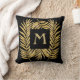 Nessas travesseiros decorativos figuram na moda, elegantes e falsas frentes de palmeiras tropicais de ouro reluzente, sobre fundo preto, com um dentro inicial de monograma, um quadrado preto. Adiciona um belo toque à decoração da sua casa ou dá como um presente de aquecimento ou de hospedagem. COORDENANDO itens em nossa loja —> http://bit.ly/2JTL3xH <-