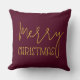 Este travesseiro apresenta um moderno design minimalista com uma elegante letra de tipografia do "Feliz Natal" em cor dourada e um fundo burgundy e é um presente perfeito para a sua casa ou para outra pessoa durante as férias.