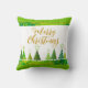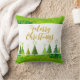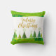 O moderno Travesseiro decorativo Dourado das Árvores de Natal Feliz apresenta árvores de Natal modernas em verde e ouro com o texto "Feliz Natal" em elegante guião de ouro. Perfeito para presentes de Natal e decoração de férias. Elaborado por ©Evco Holidays www.zazzle.com/store/evcoholidays