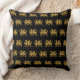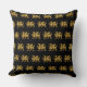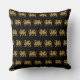 travesseiro decorativo quadrado preto com modelo de folha de ouro heráldico vintage