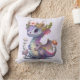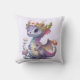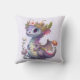 Travesseiro com uma ilustração de um dragão mítico. Escalas púrpura e azul. Uma coroa dourada florida com chifres enfeita sua cabeça. Magia, divertida e amigável.