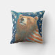 Travesseiro decorativo com um gráfico espantoso de um urso sonhador com listras vermelhas e brancas à volta dos seus ombros como um cobertor, sob um céu estrelado. Esta bela camiseta de urso é uma de uma série de animais americanos.