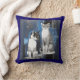 Travesseiro decorativo em dois gatos sentados graciosamente contra um fundo azul profundo, abstrato. As texturas realistas de pelo com ousada linhagem e elementos geométricos criam uma atmosfera moderna e surreal. Seus olhos amarelos expressivos contrastam impressionantemente com os arredores legal.